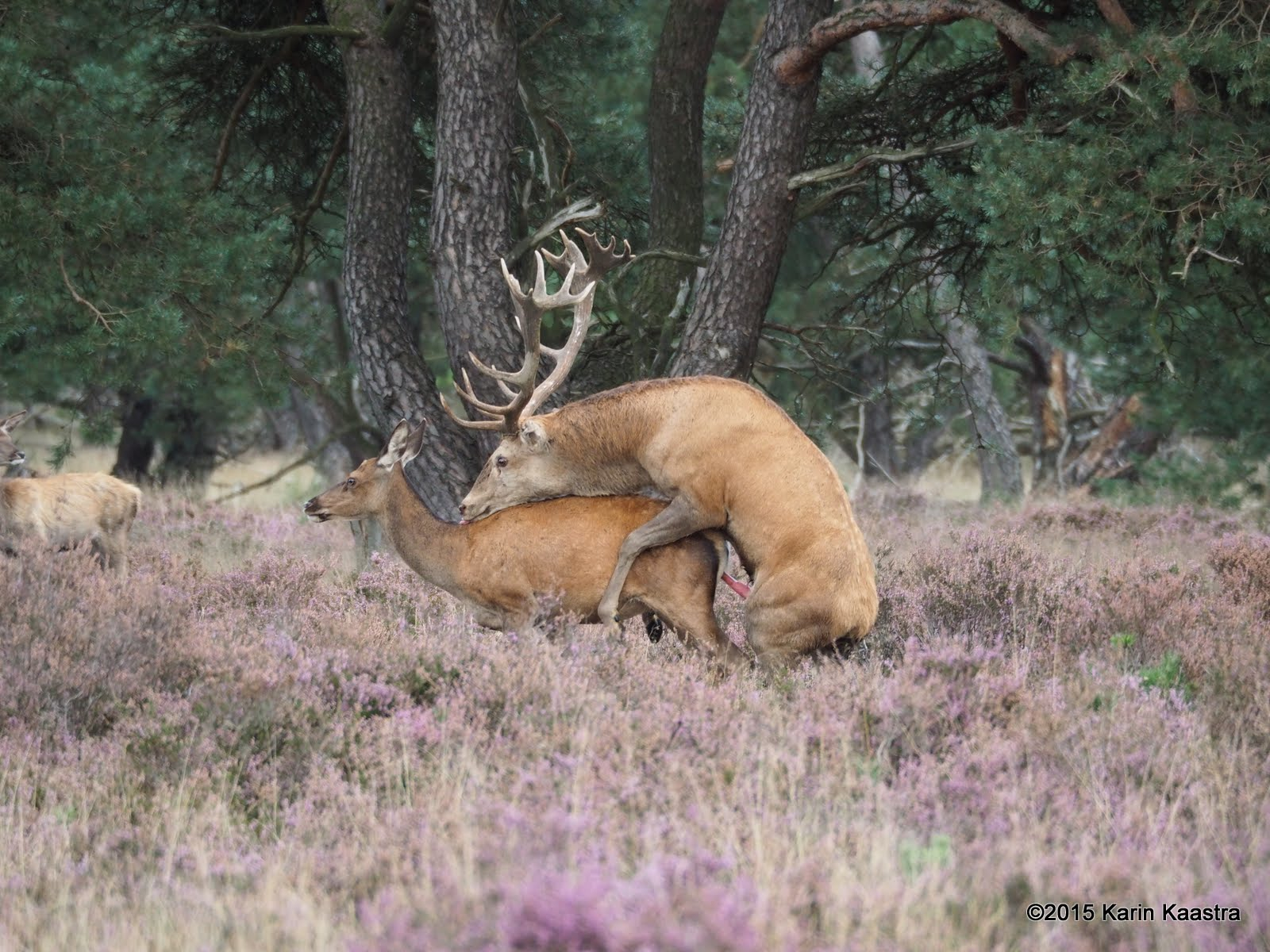 Het bleek de juiste plek toen een poosje later een hert ineens een hinde besprong.