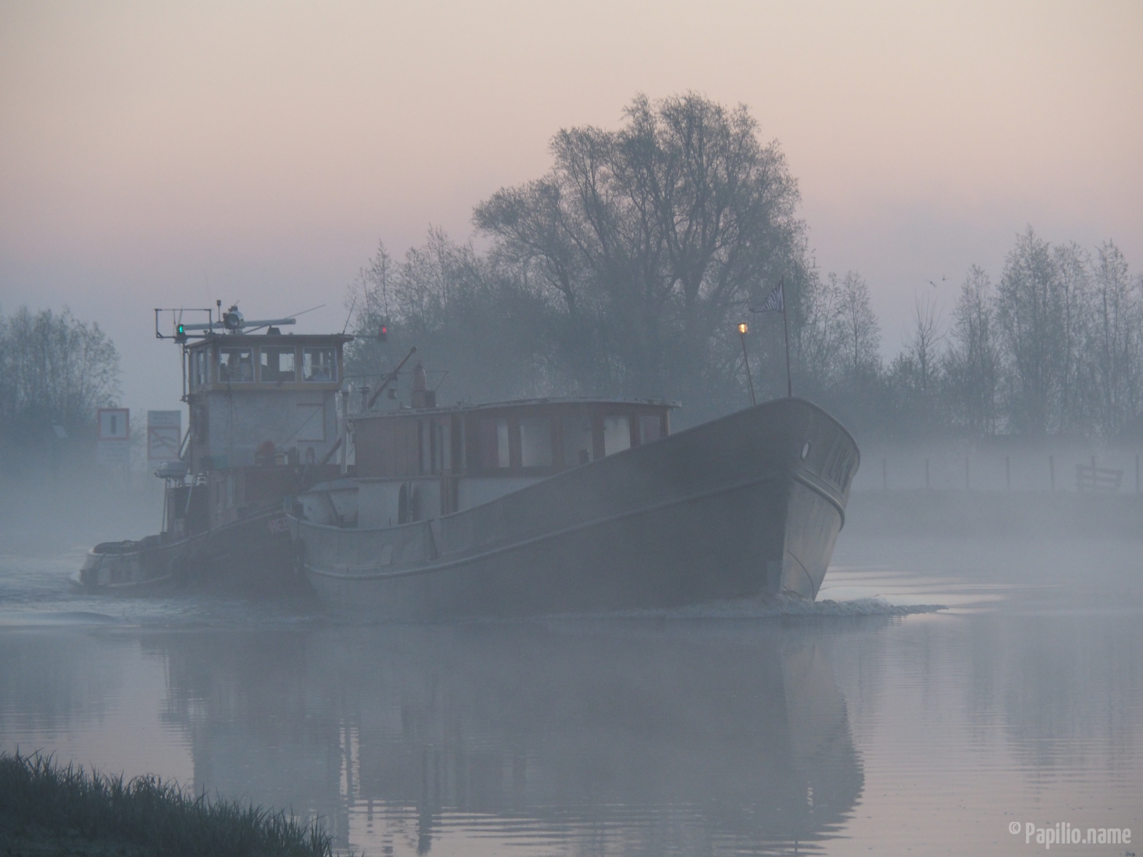 Bij het kanaal is alles in nevelen gehuld, prachtig!